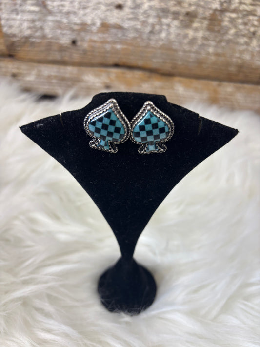 Checkered Spade Silver Studs