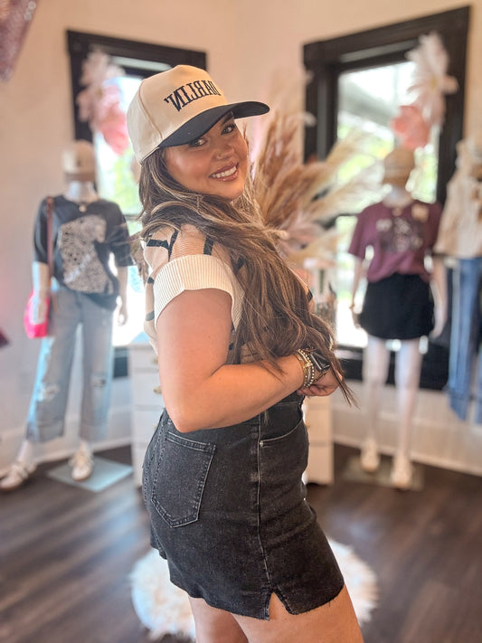 Black Mineral Wash Raw Hem Denim Mini Skirt