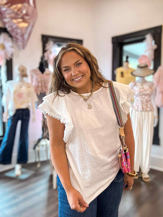 White Crinkled Layered Ruffled Flutter Sleeve Blouse