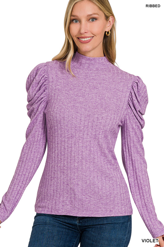 Black Button Keyhole Back Pleated Ruffle Trim Blouse