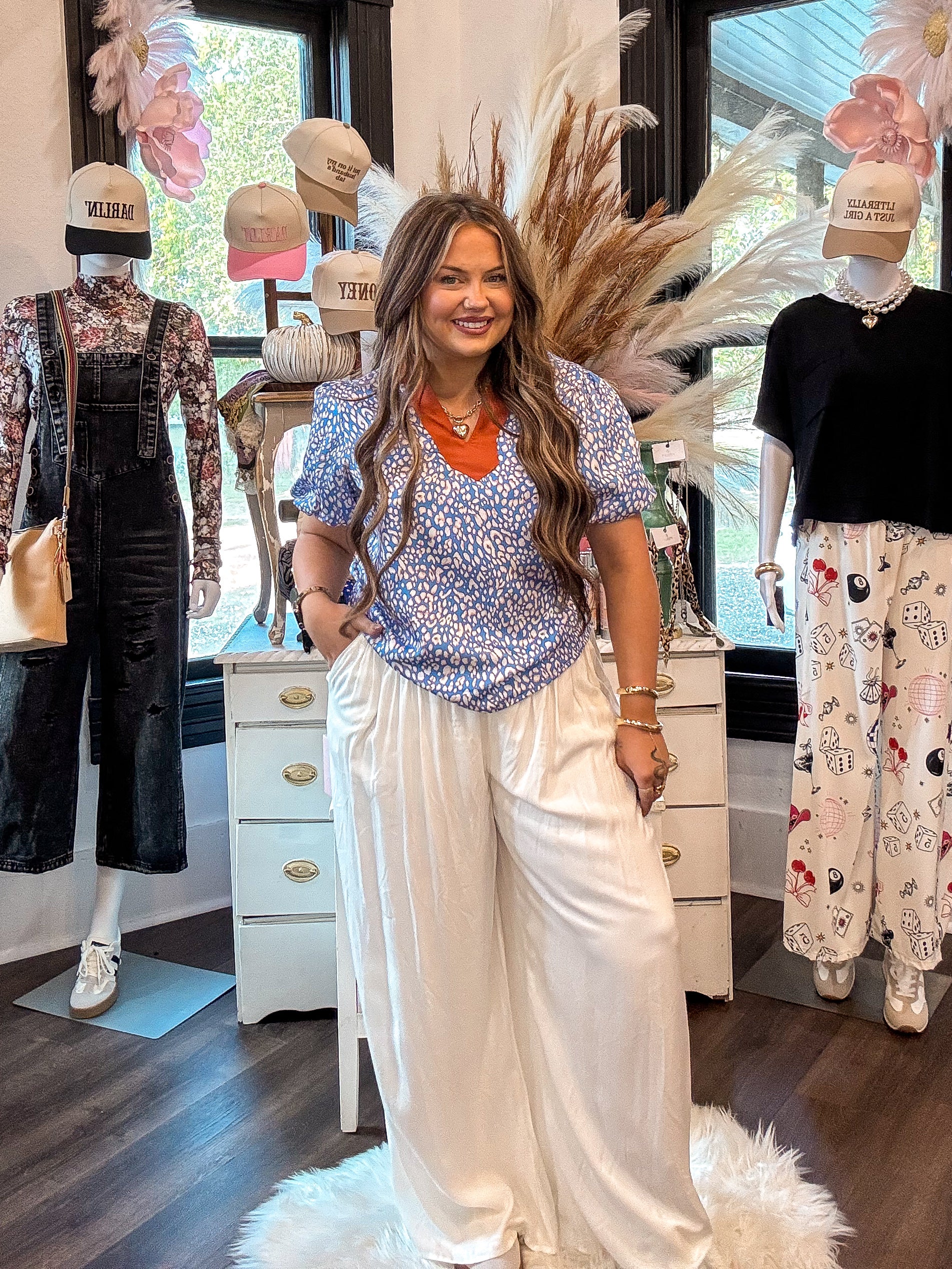 Ashleigh Blue Leopard V Neck Puff Sleeve Shirt