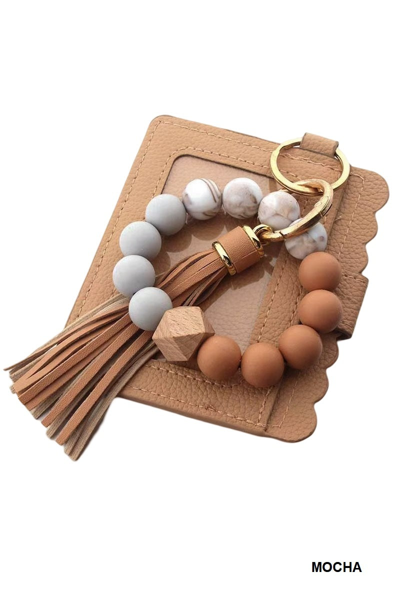This multi-functional BEADED BRACELET KEYCHAIN CARD HOLDER WALLET is the perfect accessory for those on-the-go. Keep your cards and cash organized while wearing it as a stylish bracelet or keychain. With its beaded design and convenient features, this wallet is a must-have for any busy individual.