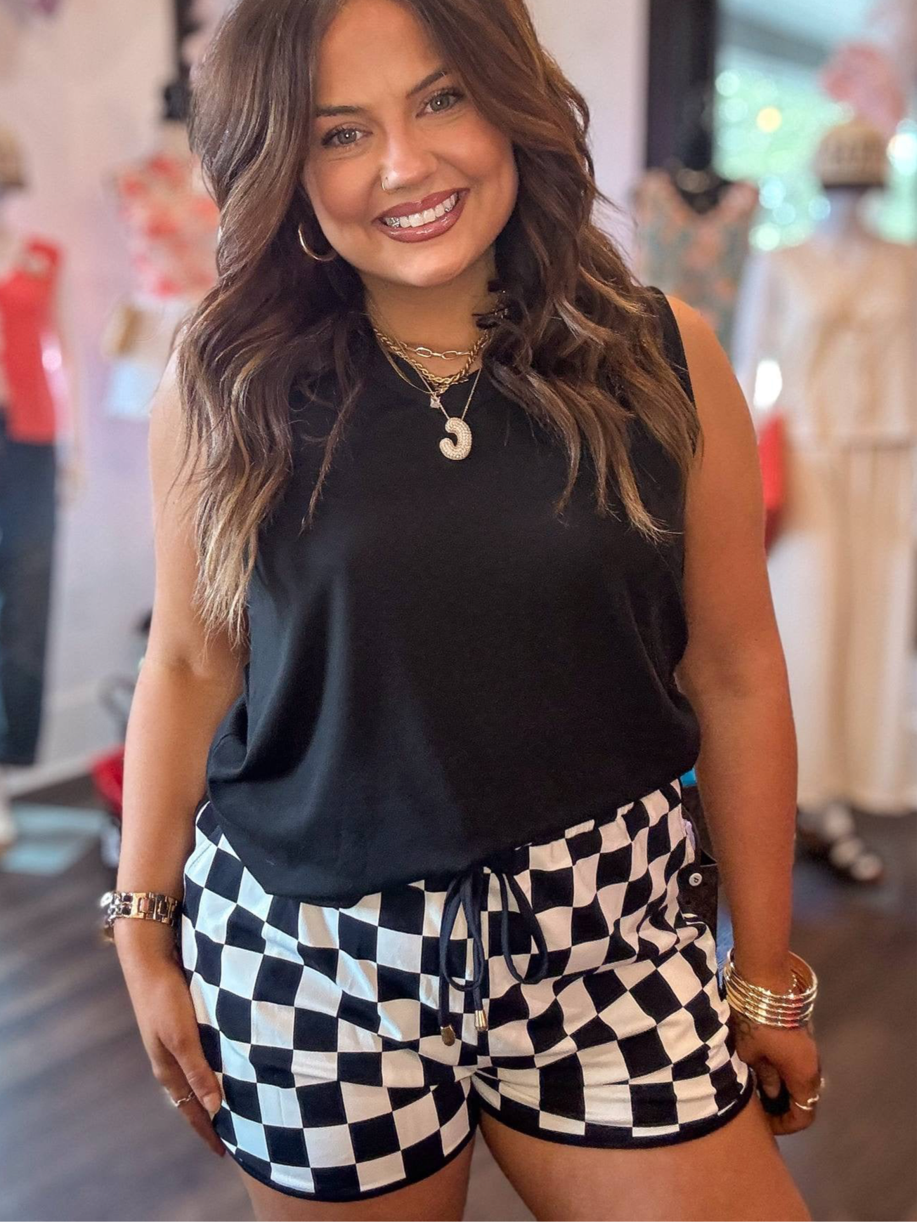 Elevate your casual style with our Black Checkered Drawstring Elastic Waist Casual Shorts. Made with a comfortable and adjustable drawstring waist, these shorts are perfect for a relaxed, yet stylish look. The black checkered pattern adds a touch of sophistication to your wardrobe.