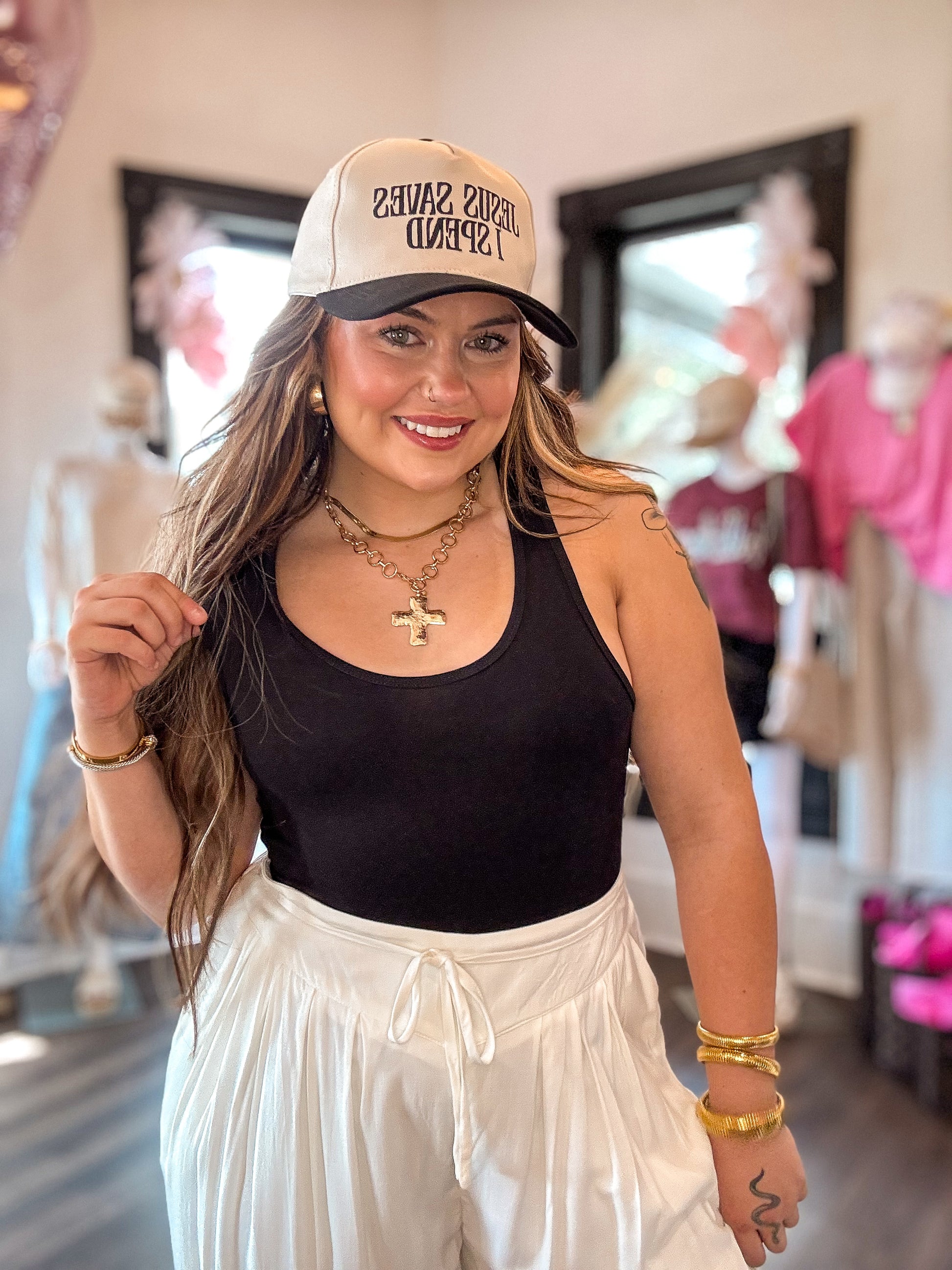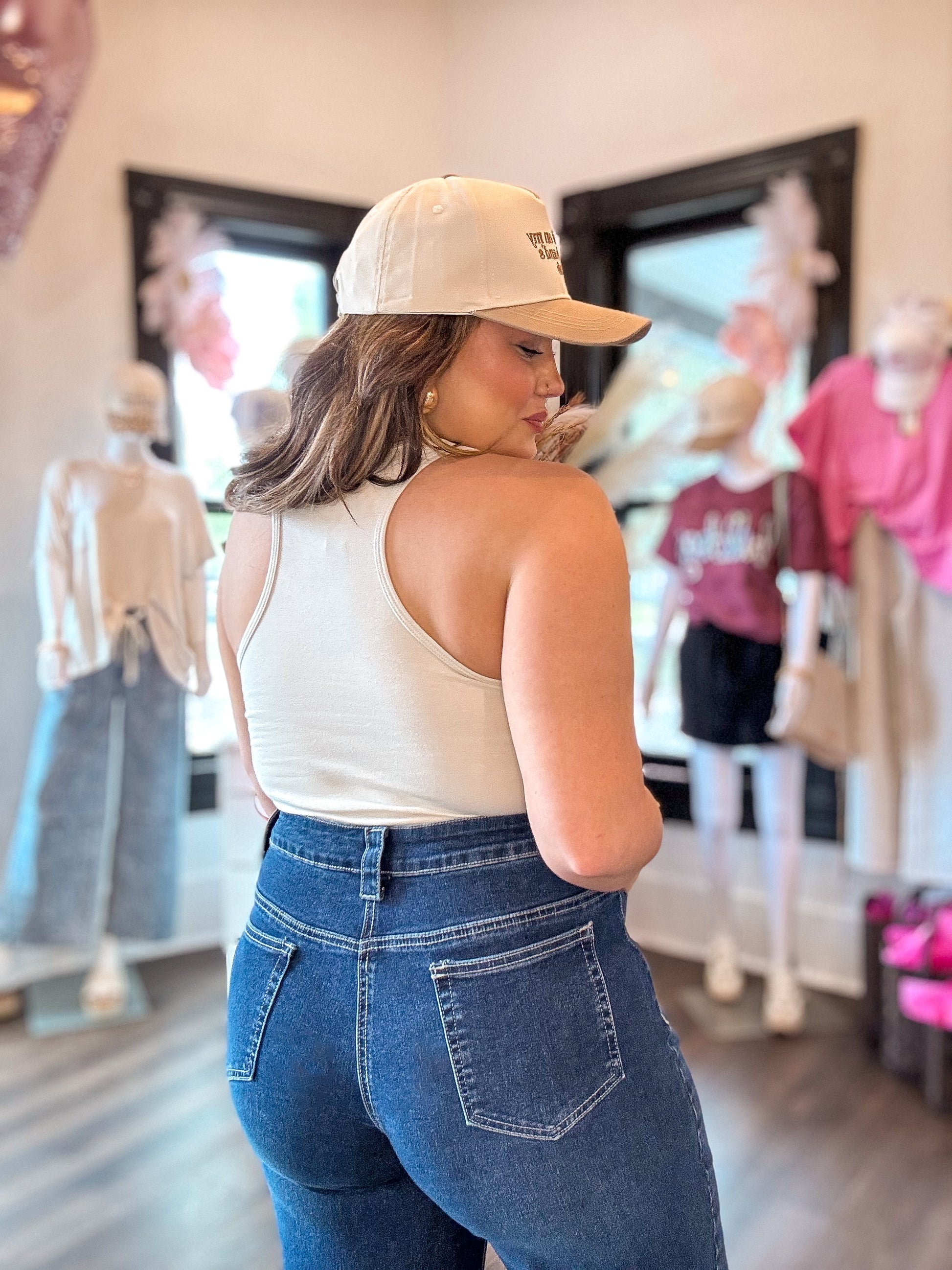This Racer Back Tank Bodysuit is a versatile and stylish clothing item that provides a seamless and flattering fit for any body type. With its racer back design, it offers maximum support and comfort for the shoulders and back. Perfect for layering or wearing on its own, it's a must-have staple in any wardrobe.