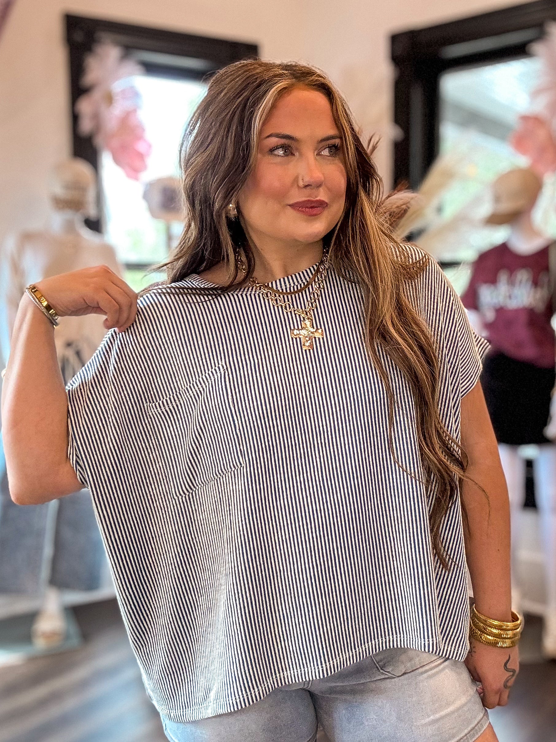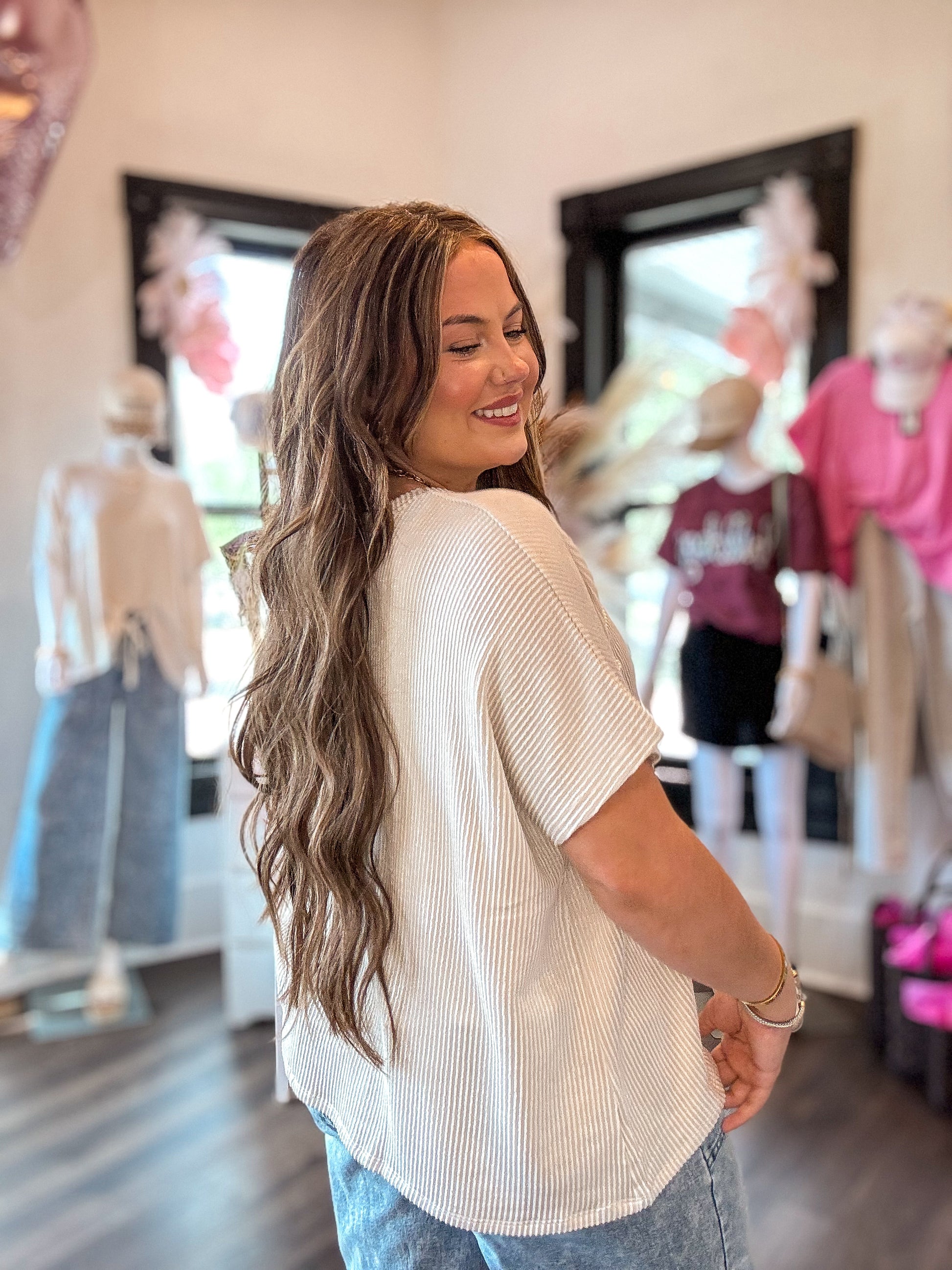 Introducing our Corded Rib Oversized Short-Sleeve Top, the perfect addition to your wardrobe. Made from a high-quality corded rib fabric, this top is both comfortable and stylish. Its oversized fit ensures a flattering silhouette while the short-sleeves add a touch of ease. Elevate your look with this versatile top.