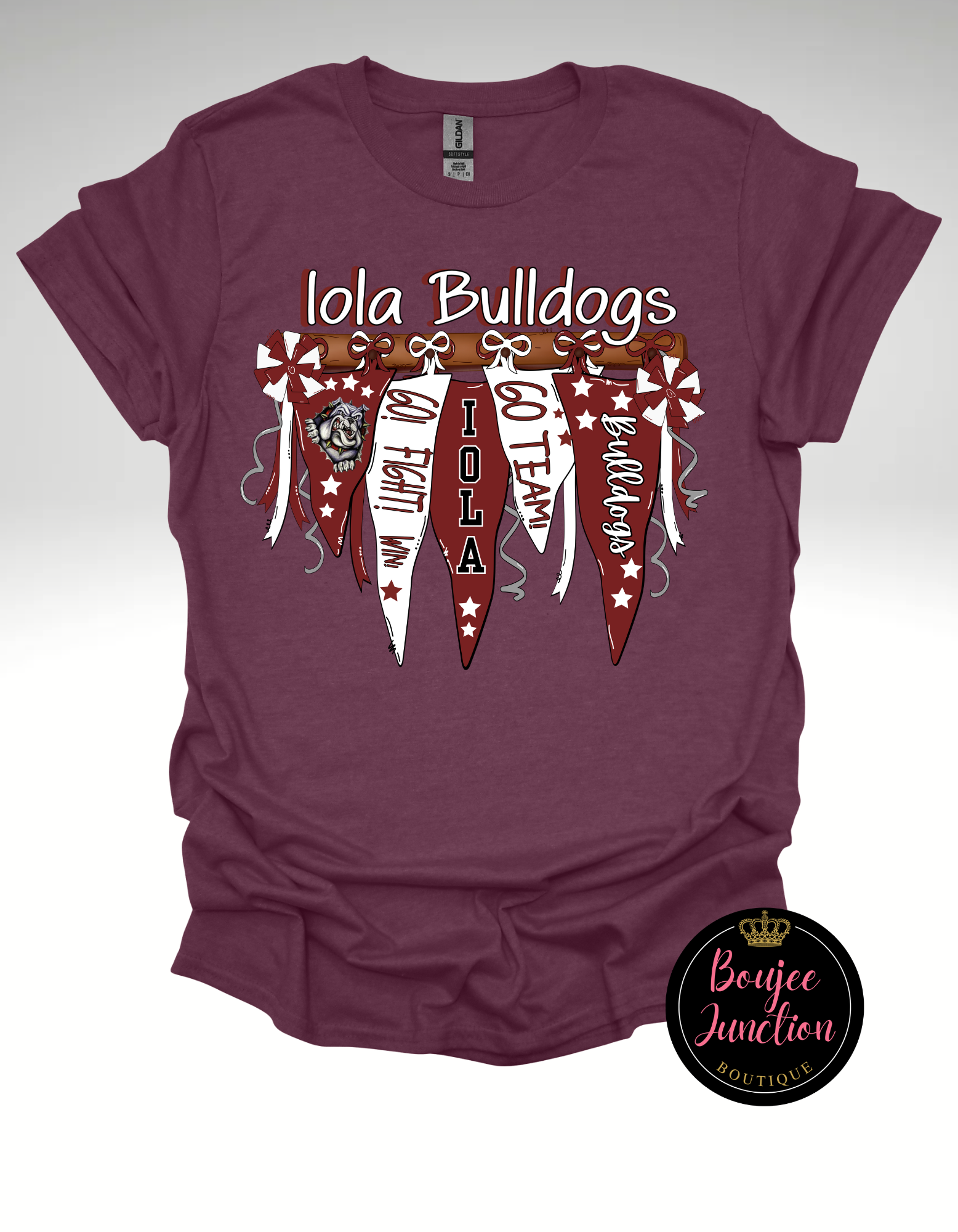The Iola Bulldog Spirit Stick Tee is perfect for showing off your school spirit on game day. Made from high-quality materials, this tee features the iconic Iola Bulldog logo and is designed for both comfort and style. Represent your school with pride and support your team with this must-have tee.
