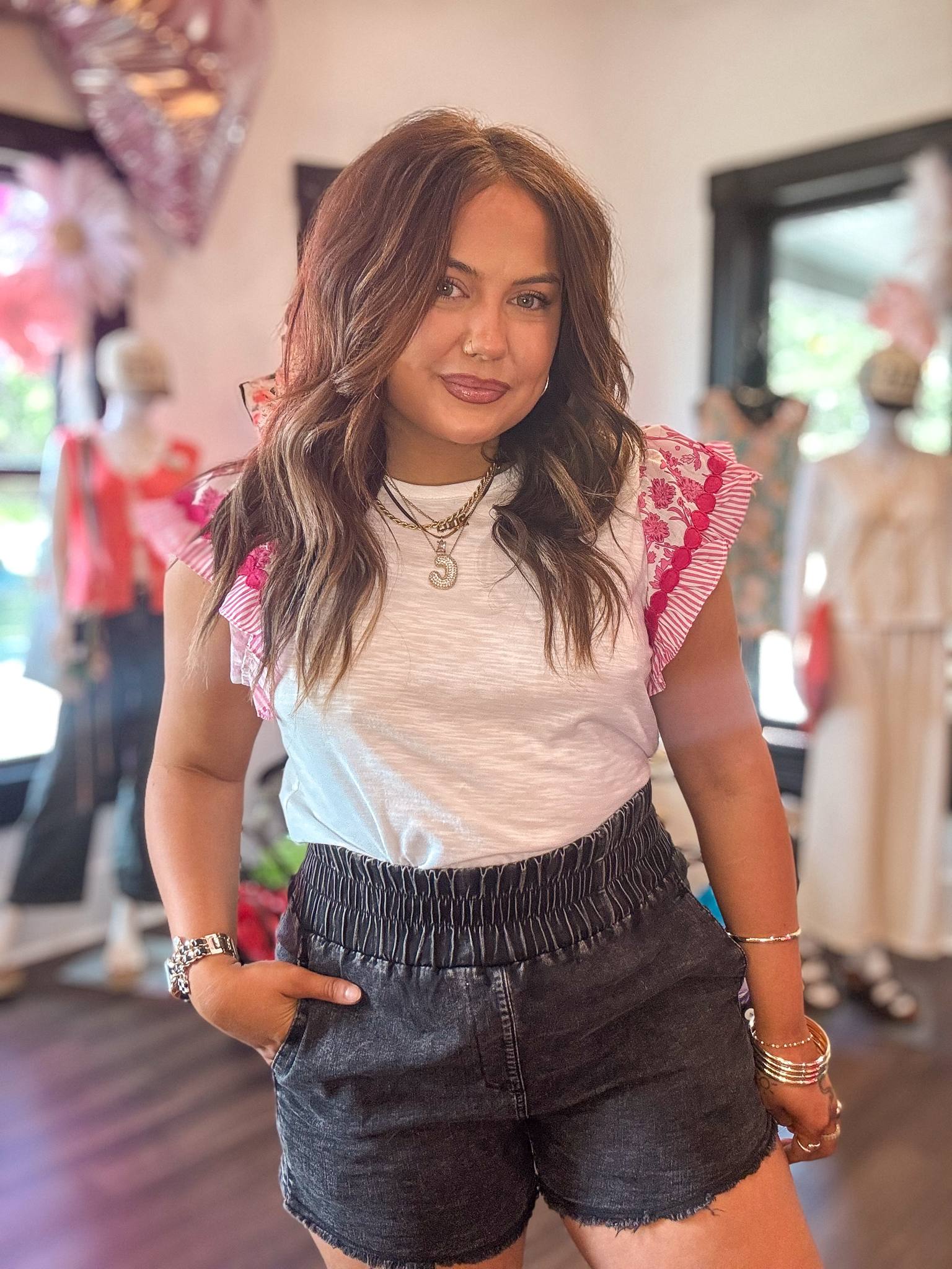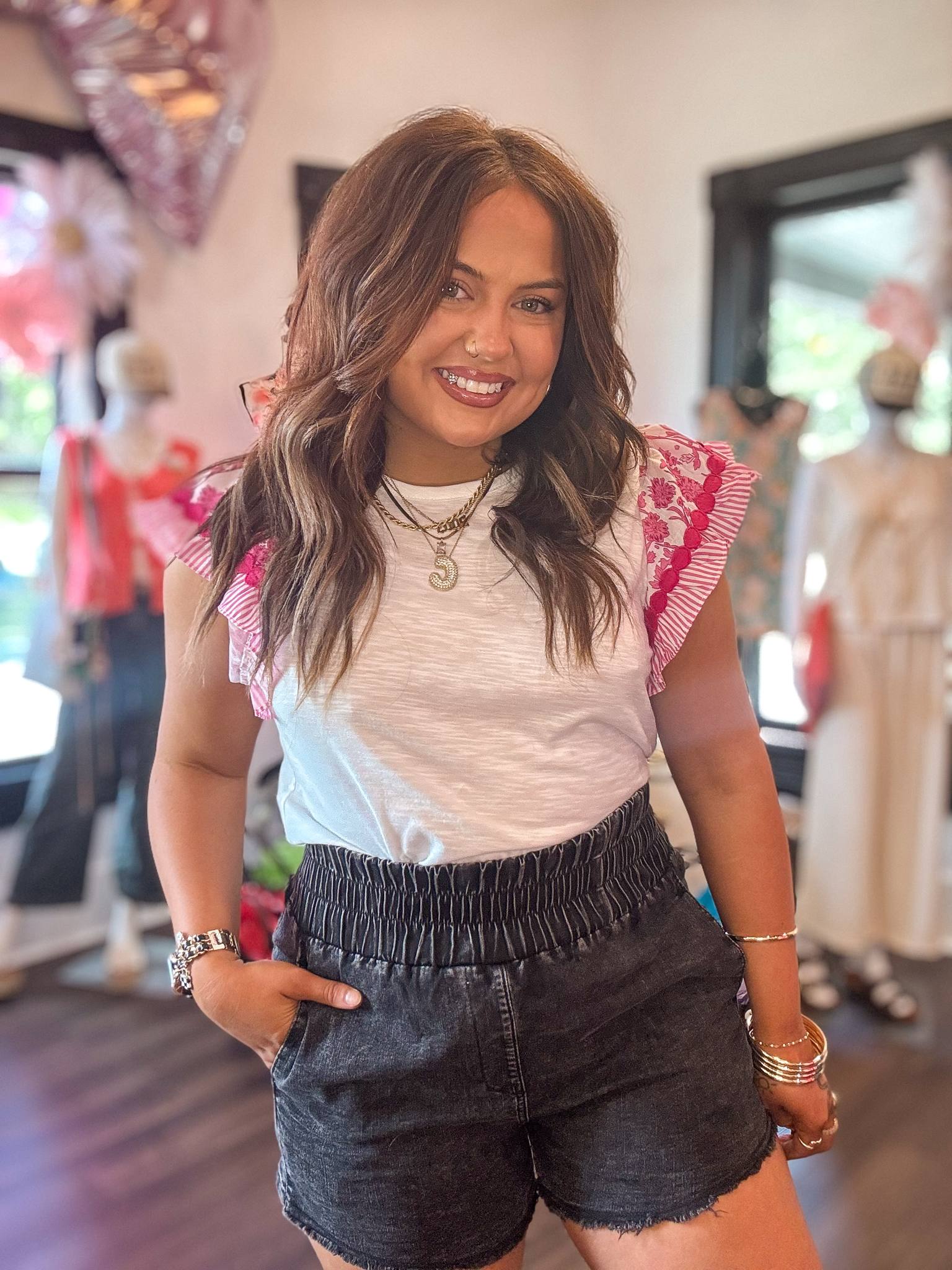 Introduce a touch of sophistication to your wardrobe with our Rose Ricrac Trim Patchwork Top. The elegant ricrac trim and printed flutter sleeves add feminine charm, while the contrast patchwork design adds visual interest. Our top is perfect for any occasion, making you look effortlessly chic.