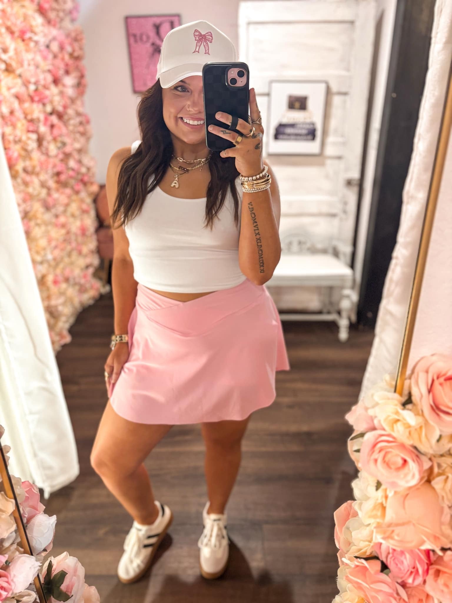 This Solid Pocketed Crossover High Waist Skort is the perfect combination of style and functionality. With its high waist design and convenient pockets, it offers a flattering fit and practicality for on-the-go activities. Made with high quality materials, it provides both comfort and durability. Upgrade your wardrobe with this versatile skort.